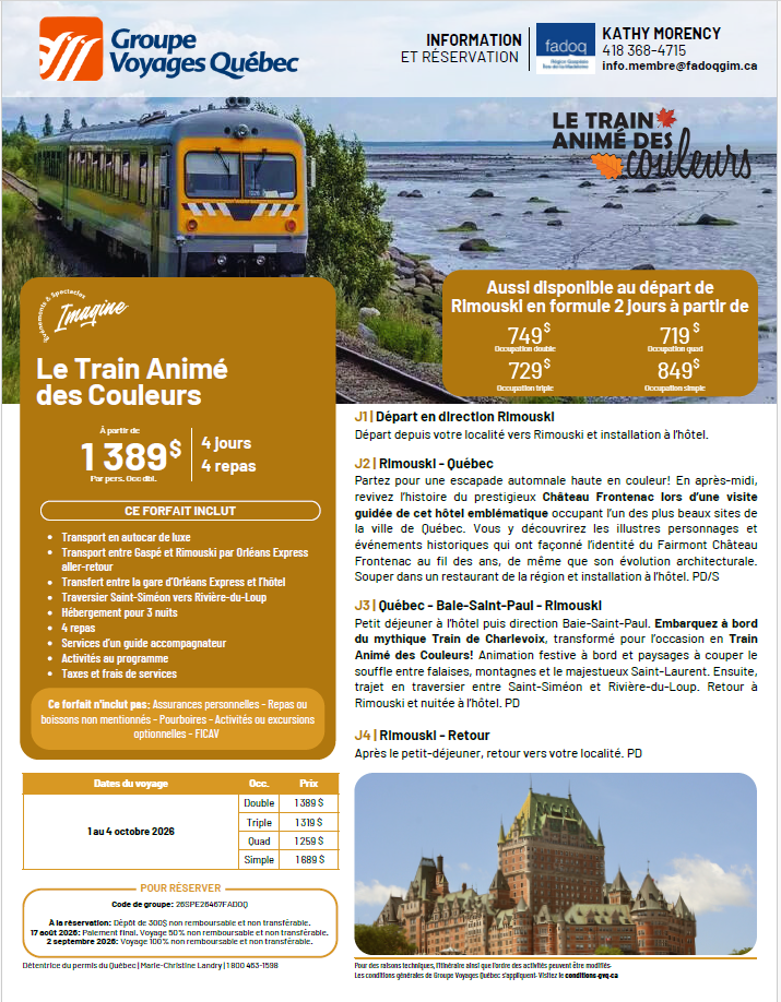FADOQ Gaspésie – Le train animé des couleurs – 01-Oct-2026 – 26SPE26467FADOQ