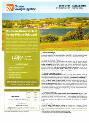 Coût : À partir de 1499$ / personne occ. double
