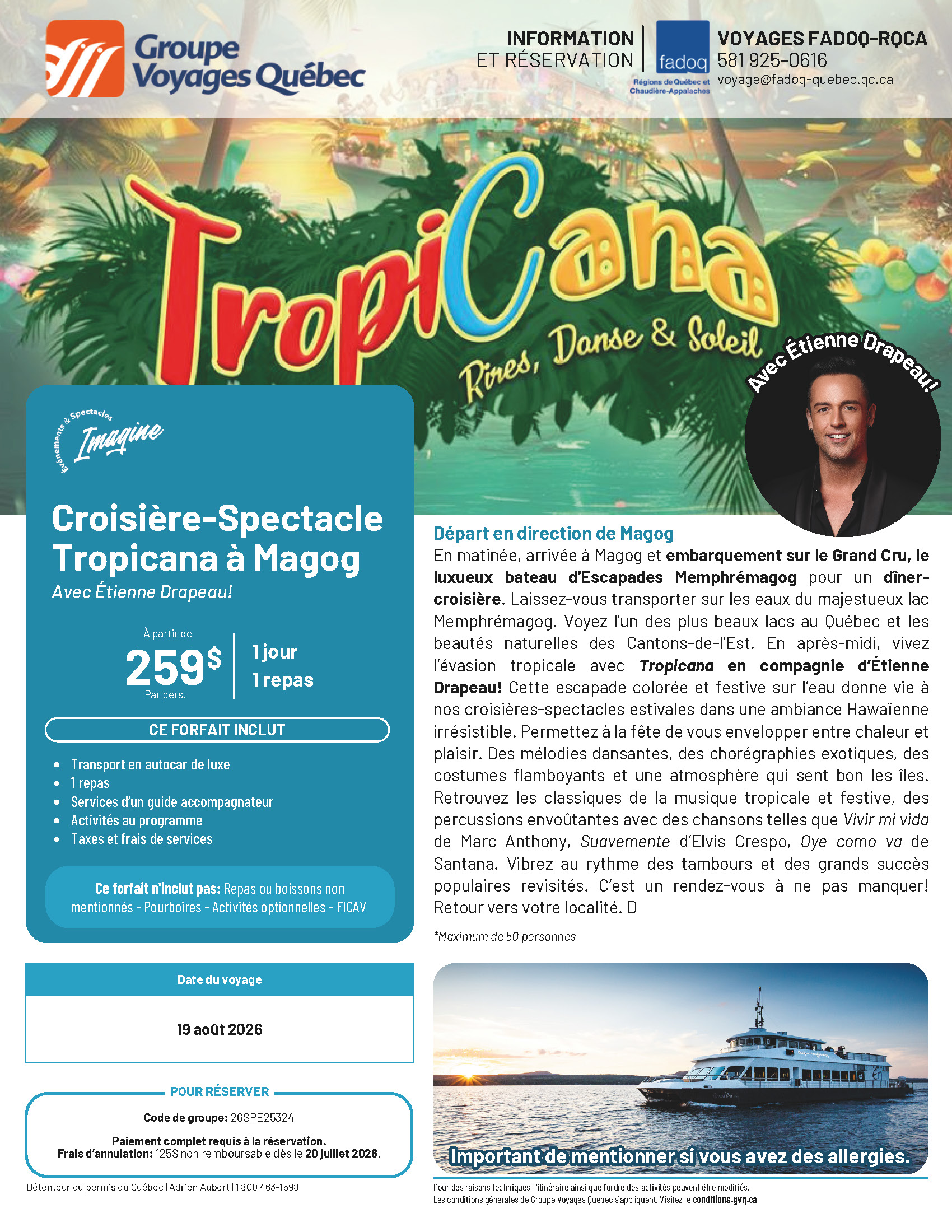 Croisière – Spectacle Tropicana à Magog